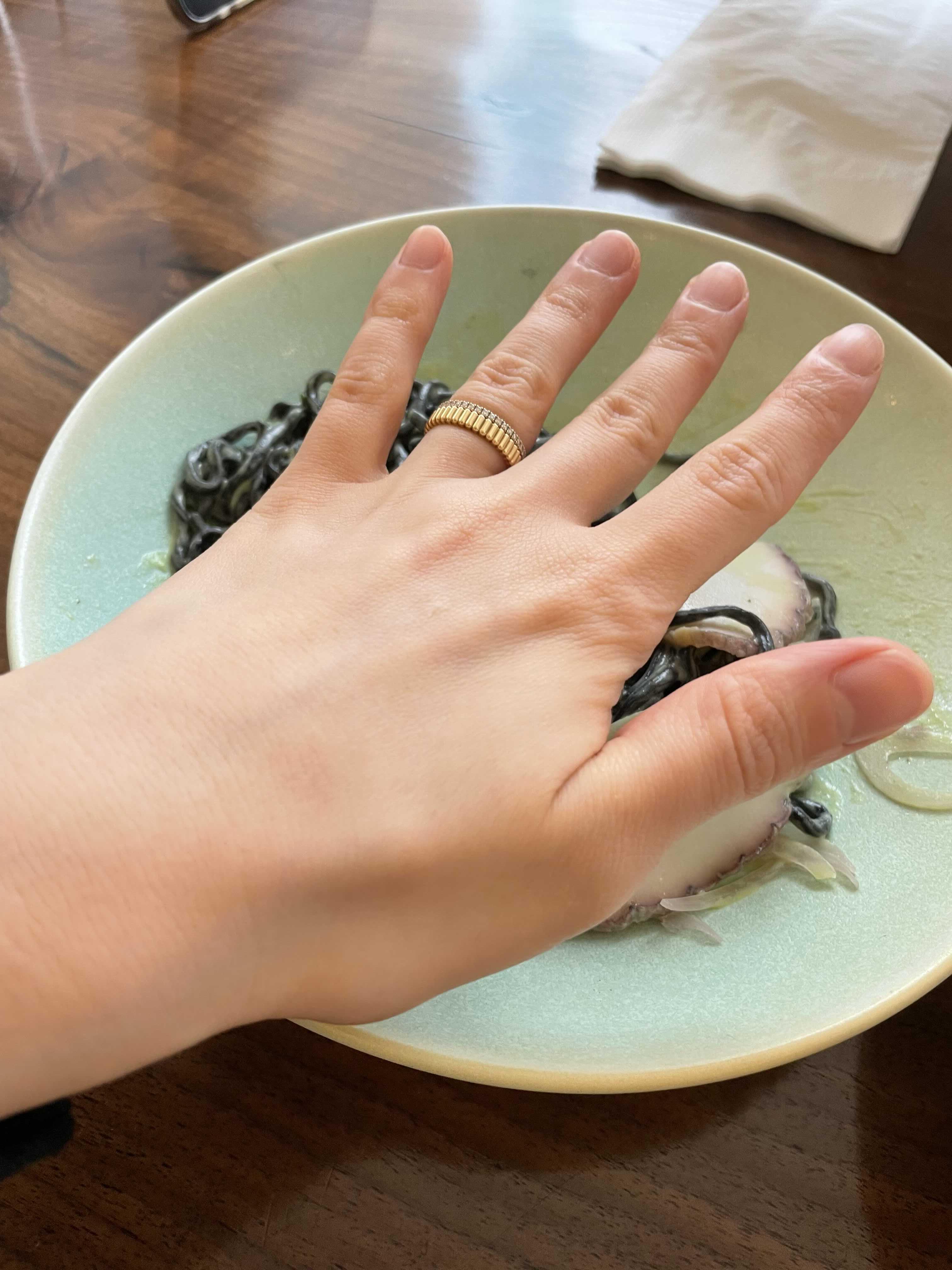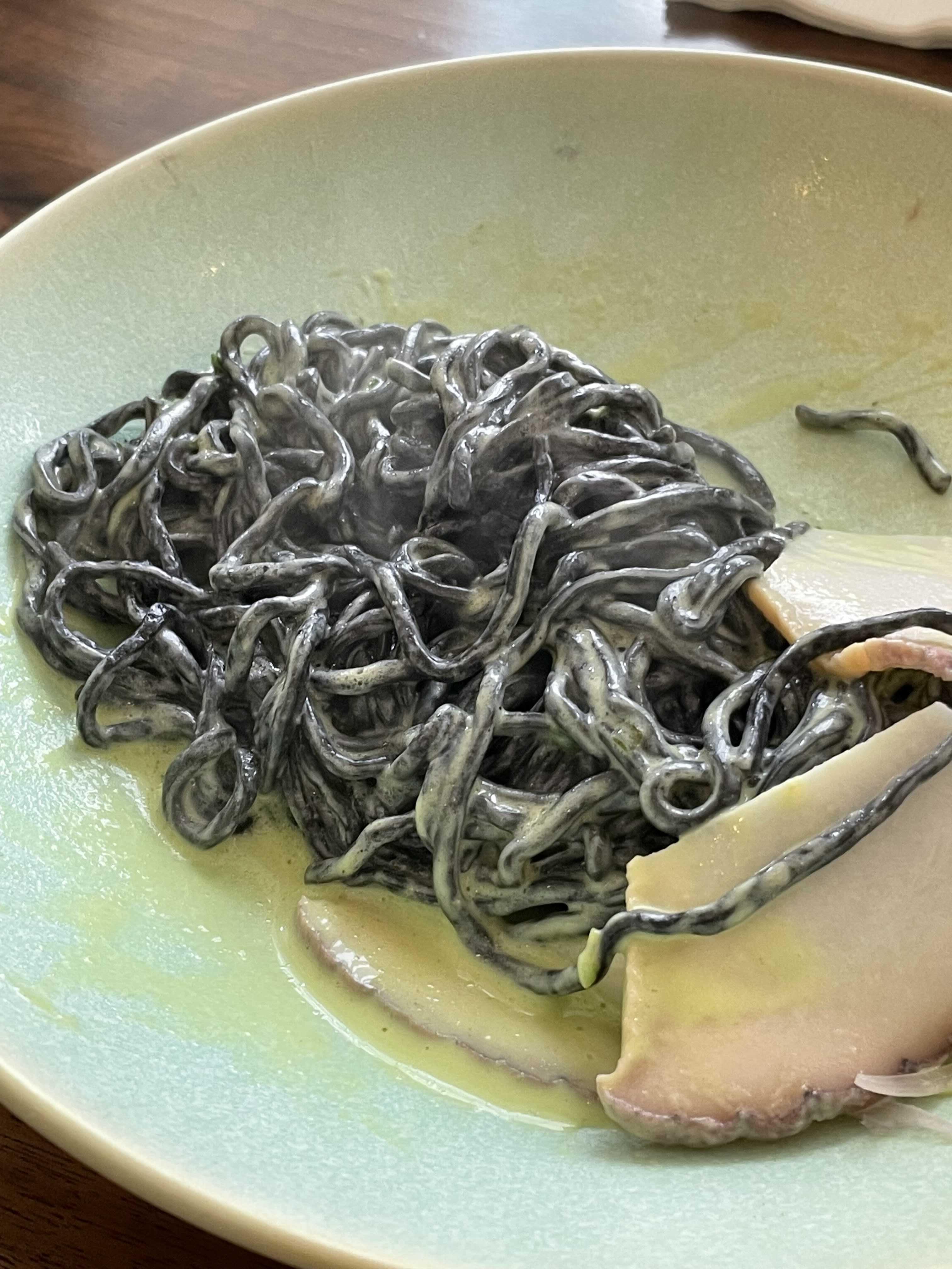 비쥬얼만 봤을 때는 일반 먹물 크림 파스타라고 생각했거든요. 근데 크림소스에서 신선한 해산물 맛과 달달한 완두콩 맛이 느껴지는 처음 맛보는 맛이었어요. 이런 크림 파스타가 존재하다니 신선하다. 재밌다. 맛있다!