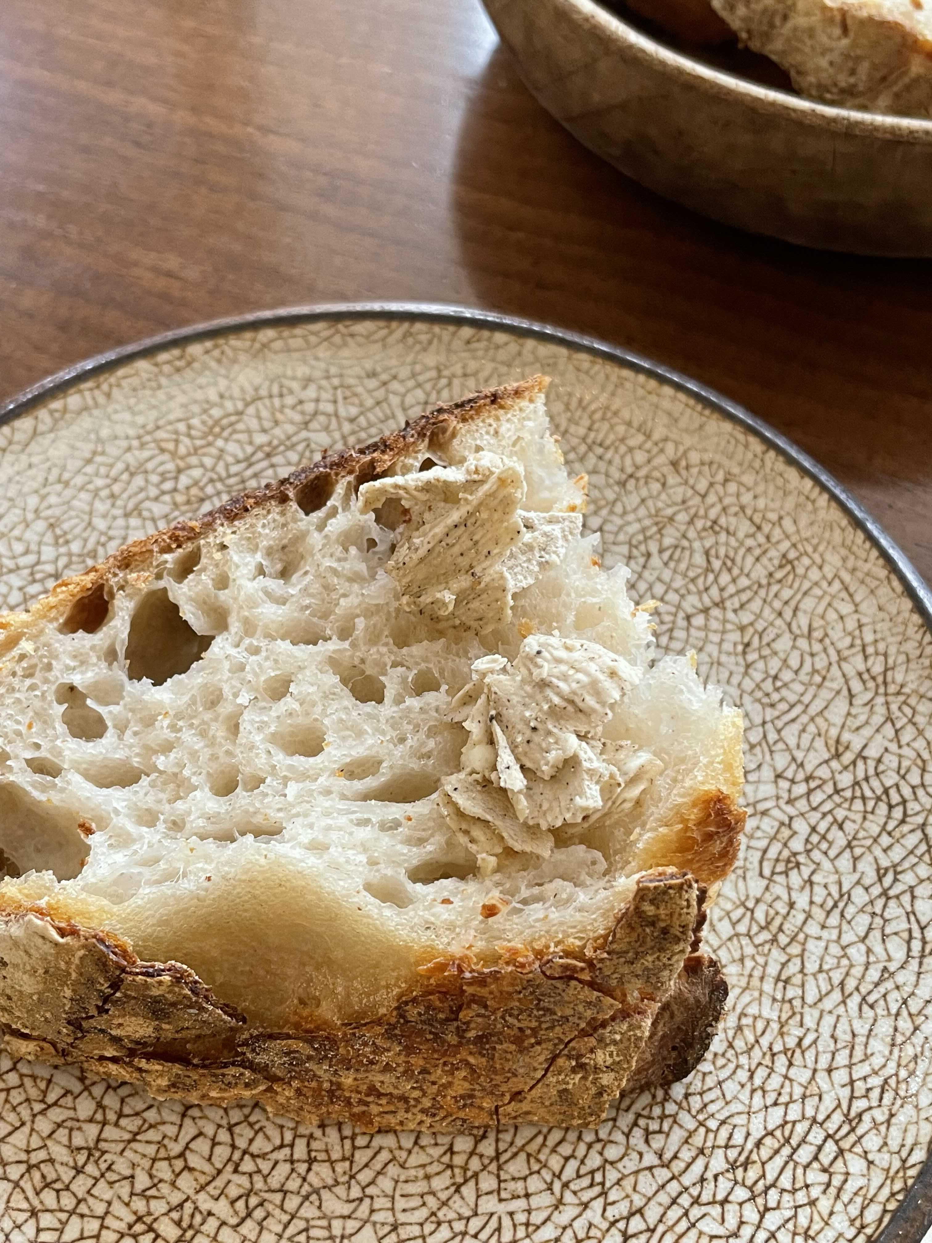 제일 먼저 준비된 사워도우 브레드와 트리플 버터. 디핀옥수에서 2년간 키운 효모로 만든 사워도우 브레드와 트러플 향이 가득한 트러플 버터 조합인데 진심 너무 맛있었어요.