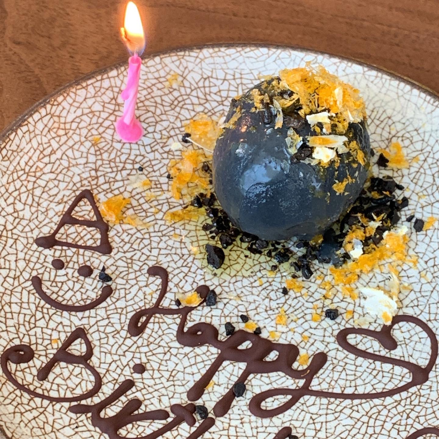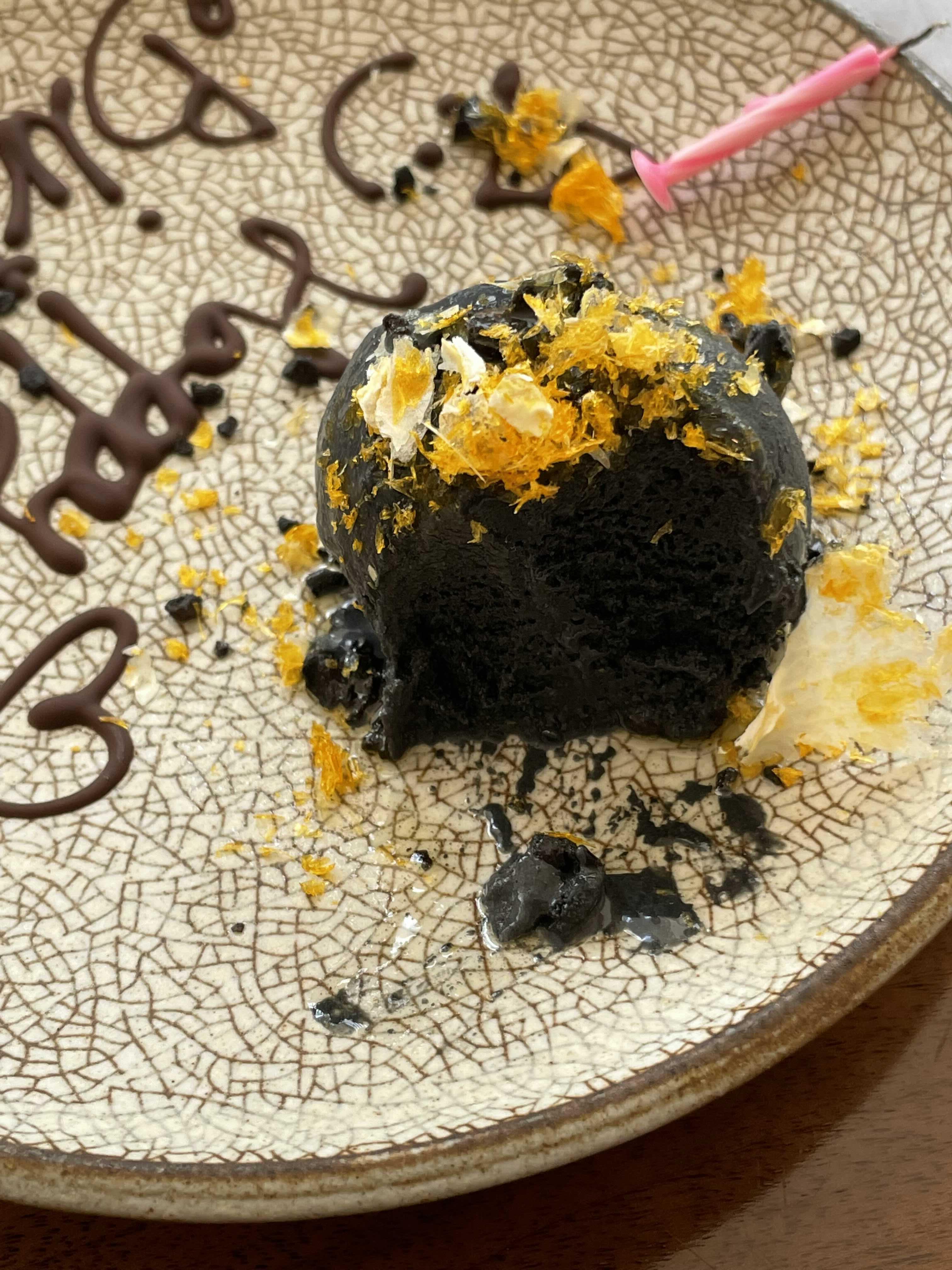 마지막으로 블랙 올리브 아이스크림이에요. 블랙 올리브 아이스크림은 디핀옥수에서 판매되는 디저트 중 하나인데 저희는 생일 서비스로 준비해주셨어요. 감동ㅠㅠ...