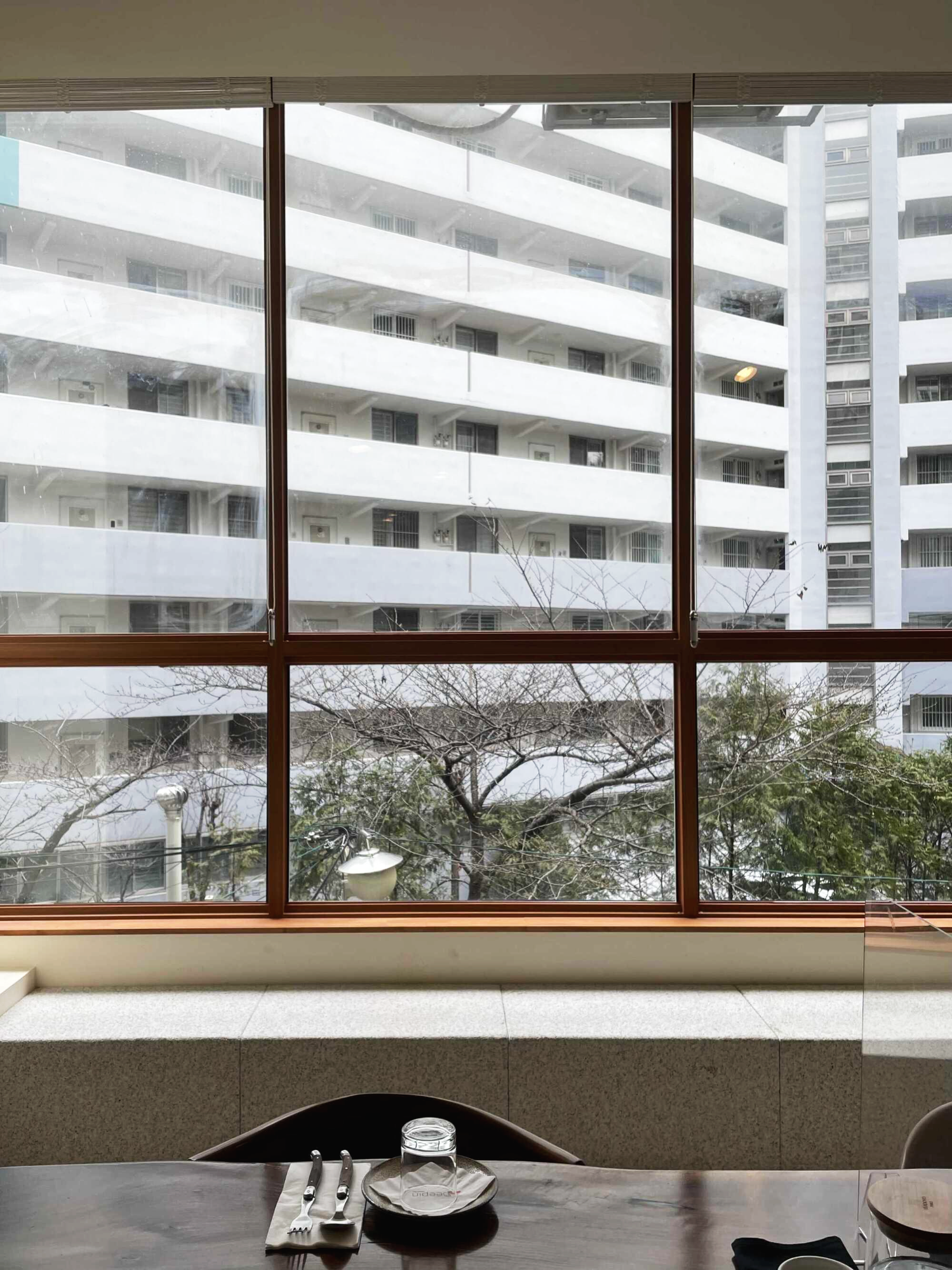 지하로 내려가 문을 열면 지하에서는 볼 수 없을 법한 아파트 뷰의 큰 창과 쾌적하고, 심플한 우드톤의 인테리어를 볼 수 있어요. 우린 분명 지하로 내려갔는데 어떻게 이런 뷰를 볼 수 있는 거냐며 신기하더라고요.ㅎㅎ 식사하면서 큰 창을 통해 햇살이 들어오는데 어찌나 행복하던지 역시 공간이 주는 힘이 크다는 걸 다시 한번 느낄 수 있었습니다~